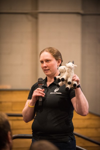 Katja presenting Breaking the Halo in Richland, WA. Photo