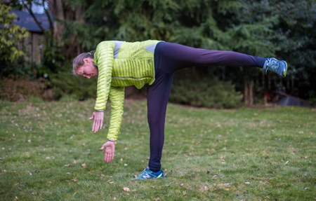 Most hikers and climbers want to improve balance and increase speed for easier travel in the mountains. For many years I've recommended the one-legged deadlift and its variations as a powerful exercise to build ankle, knee and hip stability. The Open Book T variation is an advanced balance move combining Warrior 3 and Half Moon poses from yoga, with internal and external hip rotation. It reminds me of graceful figure skaters who glide effortlessly across the ice, leg extended behind them parallel to the ground.