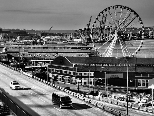 Most Seallites know that to find a fish in mid-air, one must visit the world-famous Pike Place Fish Market. I was never ready with my camera to actually catch a fish in mid-air, so I did the next best thing...I took a photo of the neon fish under the market sign at the north end of the market (well, it is up in the air).
