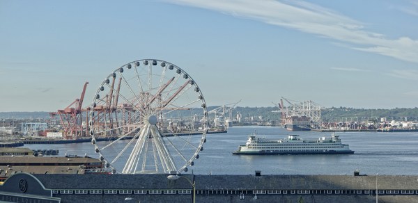 We got there early while the vendors were still setting up shop. This allowed us to explore the new section without crowds of people. This is the first time in 40 years that Pike Place Market has grown the "marketfront." The expansion has a public plaza with views of Puget Sound and the Olympic Mountains. It also has table space for farmers, craftspeople and retail space.
