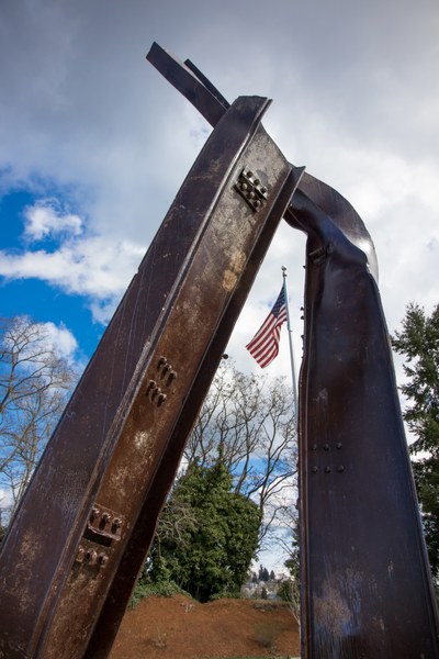 I racked up a lot of that mileage walking to the Kitsap 9-11 Memorial. This memorial used two twisted beams that came from the twin towers in New York City. It also had a corner stone from the Pentagon. A short wall contained tiles that had been decorated by kids, honoring the heroes of this momentous event.