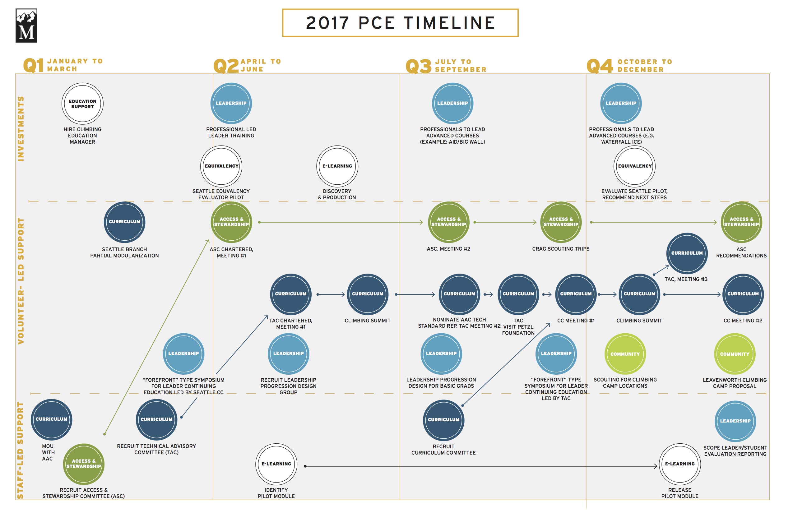 - Curriculum Committee - We will bring together volunteers from all branch's climbing committees to inventory our current courses and curriculum, standardize curriculum across branches, and then work to expand course offerings, including short-course modules to meet the needs of busy climbers.