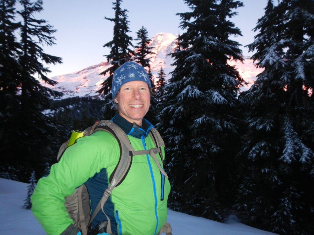 Tab celebrating month 35 of Turns All Year on Mt. Rainier in October 2018. Photo by Rick Meade.