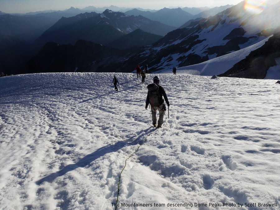 On June 20th of 2015, a team of six Everett Mountaineers set out for Dome Peak — a remote glacier climb in the Darrington Ranger District. Dome is prominent along the Cascade Crest, one of the Bulgers, and a full 3-day trip brimming with interesting terrain. The Mountaineers website describes it as a “challenging” trip, rates it a “strenuous 5/5,” and points out that, “fitness for long days is essential.” So basically we had signed on for a suffer-fest.