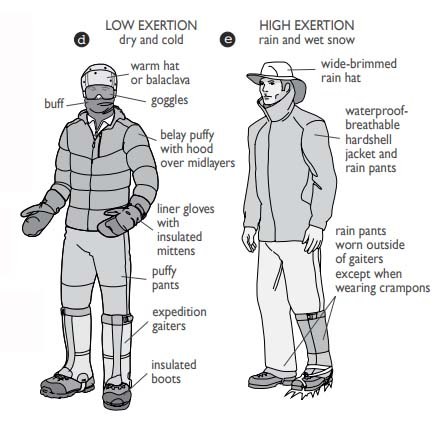 Freedom 6’s cast of character got a major makeover in Freedom 9. A meeting with Outdoor Research inspired Steve McClure, who authored the updates, to think of clothing in three dimensions: exertion, temperature, and precipitation. Things have come a long way since the Mountaineers Handbook, which contains detailed instructions for nailing boots and recommends a pull over parka due the propensity of zippers to break.