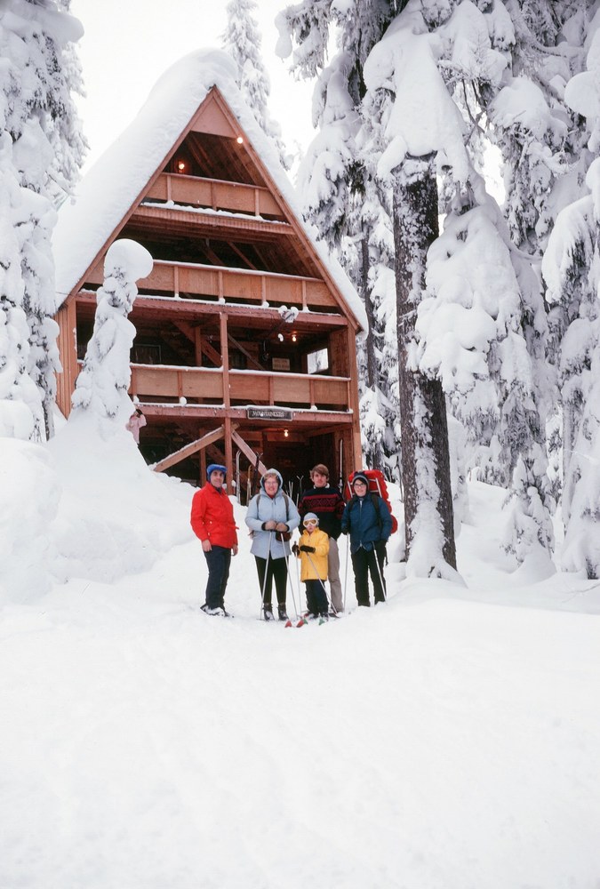The Hansen Family in front of Stevens Lodge in 1971, a good snow year.