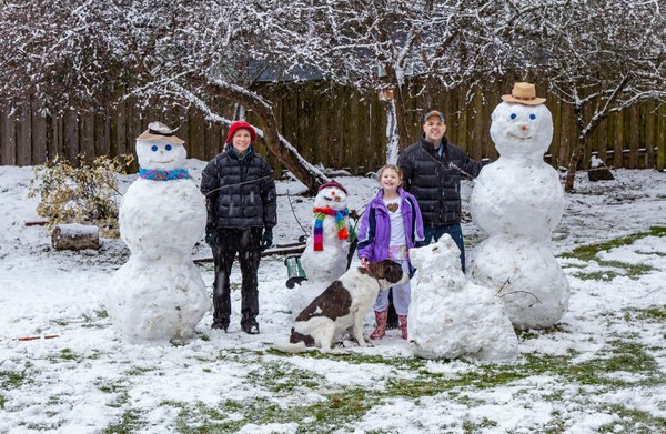 Courtenay, her husband Doug, their daughter Brooke, and the family dog Emily enjoying a day in the snow, 2012. Photo by Doug Schurman.