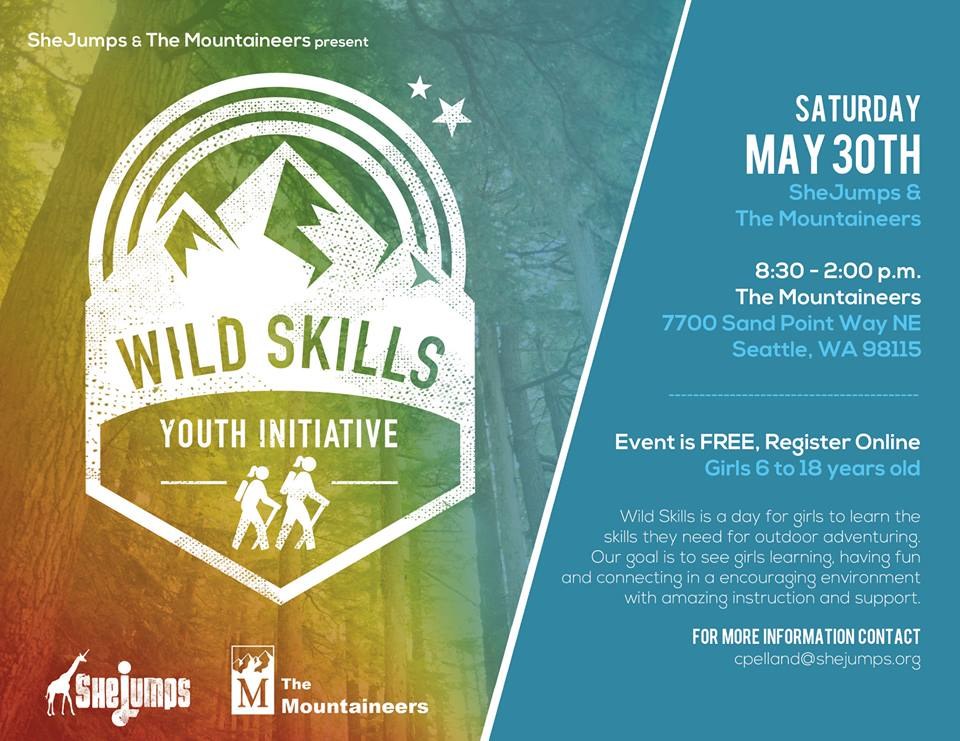 SheJumps and The Mountaineers Youth Education Department are teaming up to get girls outside on May 30th. We will be rock climbing and learning first aid, navigation, and about the 10 Essentials/Leave No Trace.