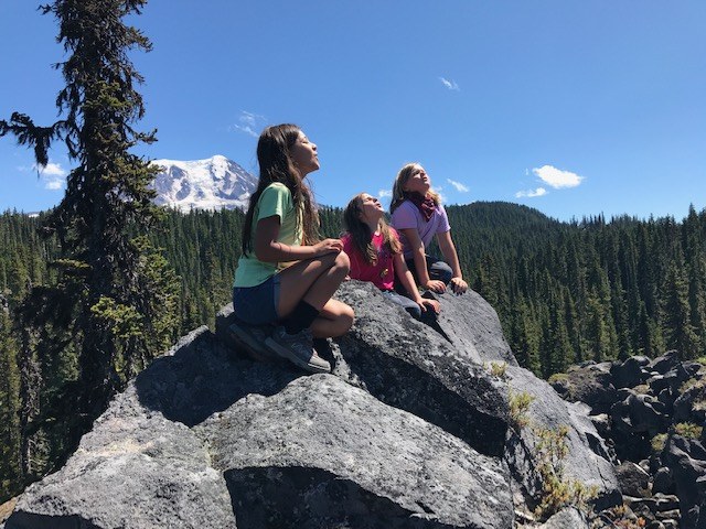 After a prep hike on Monday and kayaking Tuesday, we will enjoy 4 days/3 nights of camping at our Irish Cabin property near Mt. Rainier National Park. These days will be all about exploring the park and getting great views of Mt. Rainier on day hikes, plus learning how to filter water, prep meals, and loads of camp fire songs and games.