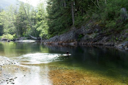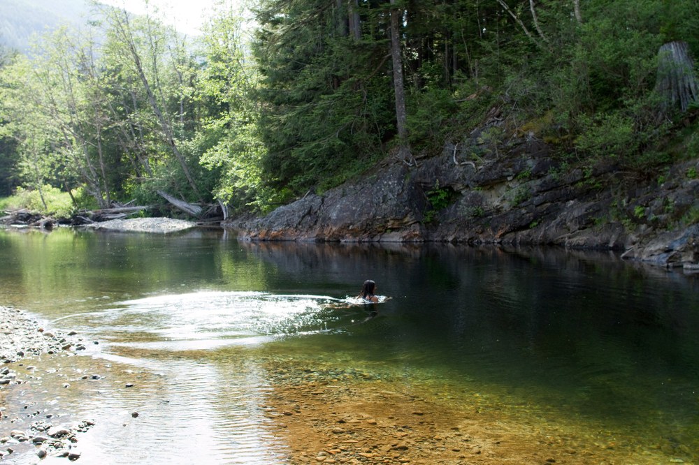 Take I-90 East to Exit 38 where, just a couple miles away from the highway, there’s a cozy little Snoqualmie River swimming hole in Olallie State Park. Though close to the road, it feels scenic, with a beach on which to throw down your towel, a little rope swing, and a mellow river rolling by. This is the perfect spot for doing a drop-by on your way to or from hiking, biking, climbing, and Twin Peaks sightseeing just up the road.