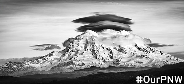 Troy is a Tacoma Mountaineer who likes to capture the beauty of our natural world as well as the architecture supporting our daily lives. To refresh his soul, he recently hiked the Wonderland Trail. In his log from the trip he wrote, "Wonderland Trail Day 7: Mount Rainier and Little Tahoma near White River. I could't stop taking pictures. Beauty beyond words!" Follow Troy for more black and white beauties like this one.