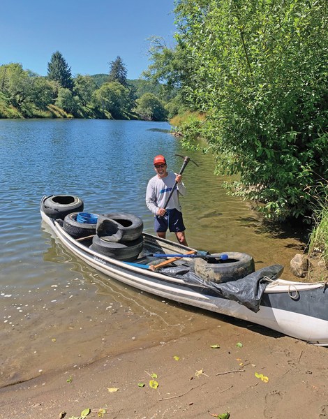 Often accompanying Ken on his trash-collecting paddling trips is friend, fellow RiverSea Ranger, and Senior Fish and Wildlife biologist Mike Szumski. About twice a year, Ken, Mike, and other stewards hold an organized gathering to canoe local rivers such as the Salmon, Yaquina, and Siletz and dig out tires. Occasionally, the group’s hard work makes it into the local paper, which Ken hopes inspires others to think more sustainably about their waste decisions as well as raise awareness of how easy it can be to steward our natural places. “You have to suffer the recognition to promote the idea that people are doing this,” Ken humbly teased. “I am just one of many doing the same thing.”