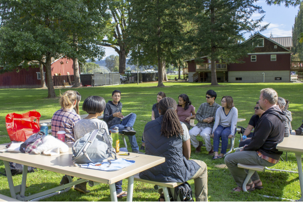 It's autumn in the Pacific Northwest yet sunshine still warms a constellation of colorful tents. Black, brown, Asian, and indigenous folks sit around a bonfire by a grassy meadow along the banks of the Snoqualmie River. Some have traveled across the region and some across the country by car, bicycle and plane.