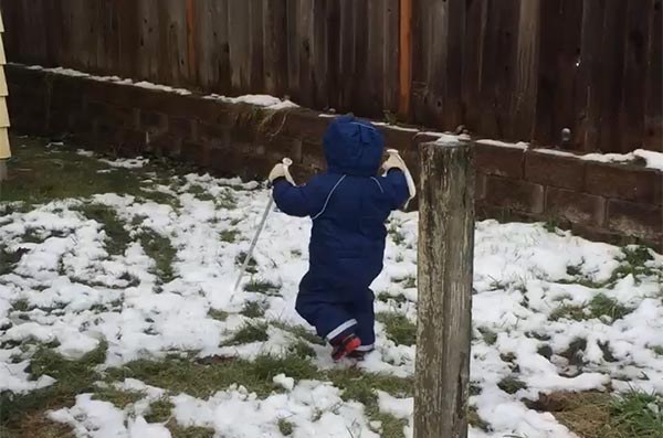“We thought it would be fun to get James outside,” said his mother Sue. “So we set him up with some ski poles and taught him the basics of the diagonal stride – from there he was off to the races.”