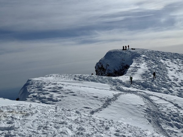 We revisit Mt. Hood just a few weeks later in this trip report, which shows just how easily conditions can change. If wind gusts strong enough to shake the car didn't initially deter this group, the blast that blew away their Sno-Park pass was as clear a hindrance as any. The group tried again the next day and completed their grand tour of the mountain’s natural features, including a stop to see what was cooking in Devil’s Kitchen.