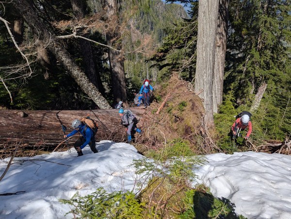 These hikers got their 6.5 hours worth of a 6.5-mile challenge in partial snowmelt. Read on for how one participant got innovative with their pack-weight and created a whole new conditioning incentive.