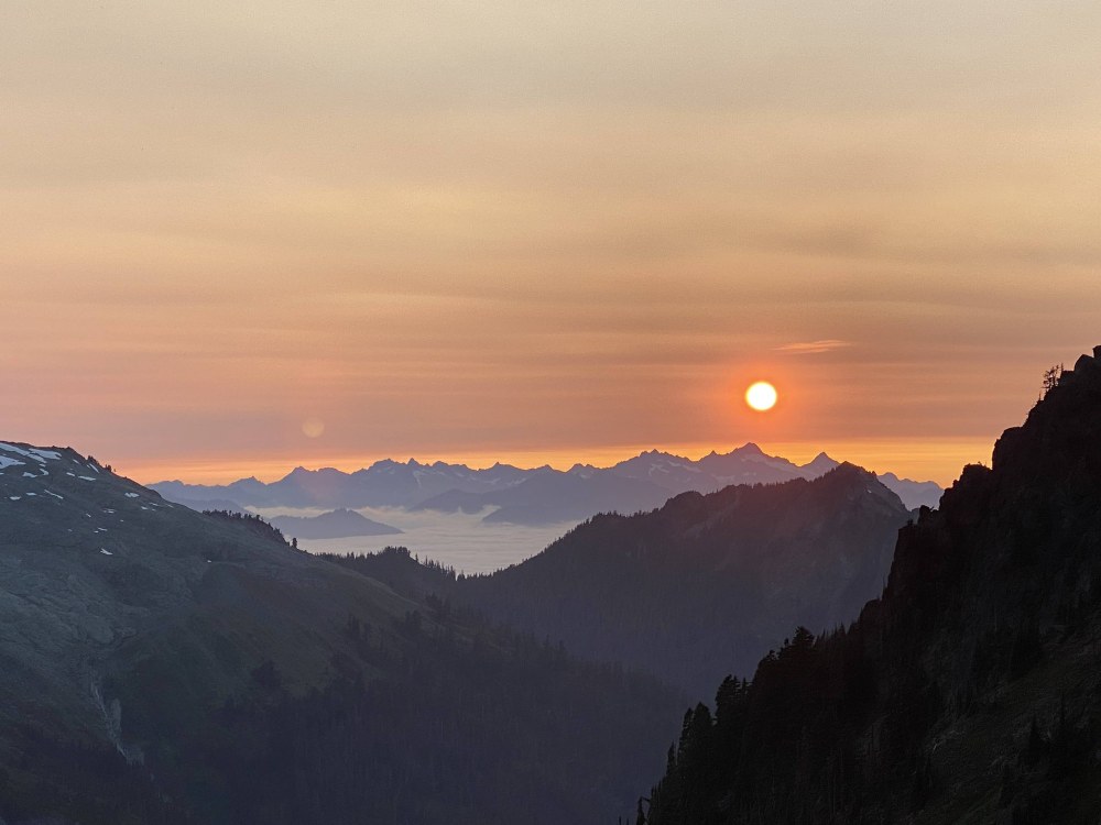 We began the route at 7am on the Anderson/Watson lakes trail before splitting off to the climber’s trail leading to Watson Peak. We followed this route up past a small saddle before heading East across a series of rock ridges and meeting up with the Watson Glacier/snowfield below the Watson’s ridgeline. Being late season, we had to negotiate some ice and agreed that it’s better to stay low (confirmed on the way back) and traverse at 5,500’, slowly losing elevation to about 5,100’ to bypass a rock buttress. In order to continue the generally eastward traverse, it is then necessary to ascend back up to a notch at 5,400' to pass over to the Noisy-Diobsud Wilderness area on the South side of the ridge line. On the South side, the cliffs appear difficult to traverse, but there are two short scrambles and quite a bit of side-hilling that allowed us to avoid losing much elevation.