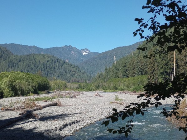 North Fork Quinault River looking upstream towards Mt. Lawson. Photo By Regina Robinson.