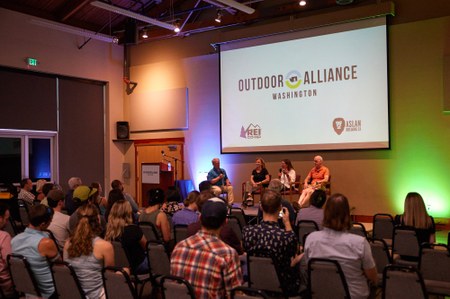 This event was made possible through support from our sponsors, REI Co-op and Aslan Brewing. In addition, Patagonia, Feathered Friends, Evergreen Mountain Bike Alliance, Vertical World, Ombraz, The North Face, and Stanley also supported us by donating gear and experiences for our giveaway drawing for event attendees. We greatly appreciate all of these companies' support of Outdoor Alliance Washington.