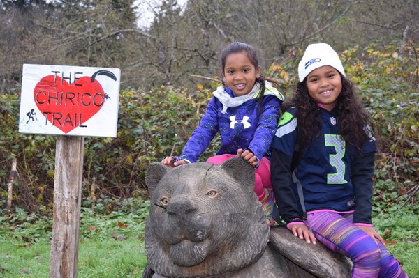 Anisah (left) and Aisha (right) at Chrico trail head on a weekend hike. Photo by Suzanne Gerber.