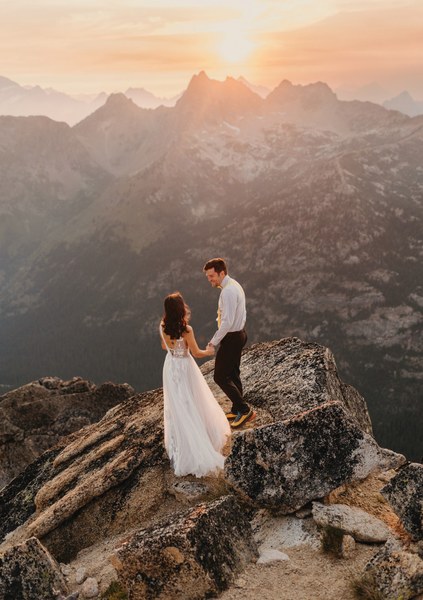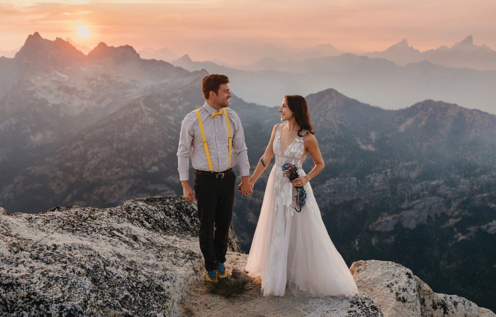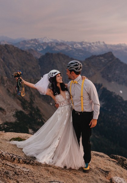 When two climbers who met in the mountains get married, it only makes sense to tie the knot in the alpine. Last August, I eloped with my now husband Garrett on the summit of Liberty Bell in the North Cascades for an intimate, sunrise ceremony. Eloping in the mountains where we fell in love was an exciting and special way to celebrate our love, our relationship, and our commitment to each other.