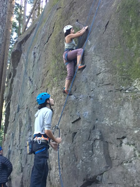 I had never climbed before and really didn’t know anything about it. I never saw rock climbing as a thing people of color did. I knew no climbers and saw climbing as an affluent recreational activity. Little did I know, The Mountaineers would open the door to new friends and community, a healthy lifestyle, and my favorite way to spend my time. I am fortunate to attend SAMI which offered rock climbing as a new elective. I thought since this was my last year, it's now or never. In the beginning, I was heavily questioned by my friends because a small, multi-racial city girl who wears heels in the harshest weather conditions and enough jewelry to be heard jingling from a mile away isn’t what you may picture when you think of a rock climber.