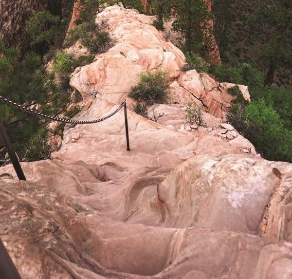A particularly heart-stopping stretch of trail at Angels Landing. Photo by Scott Turner.