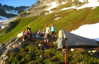 Backpackers hike to a forest or mountain camp and stay overnight. We generally sleep in tents. Our Mountaineer backpacking trips include from three to eight backpackers. There are many reasons for carrying the extra overnight gear. Backpacking allows you to reach more remote destinations or perhaps return a different way (loop trip). You also gain the solitude of wilderness, great views, challenge, exercise, camaraderie of fellow Mountaineers and the safety of going with several people. Sometimes we set up a base camp at a good camping location for several days and thoroughly explore an area.