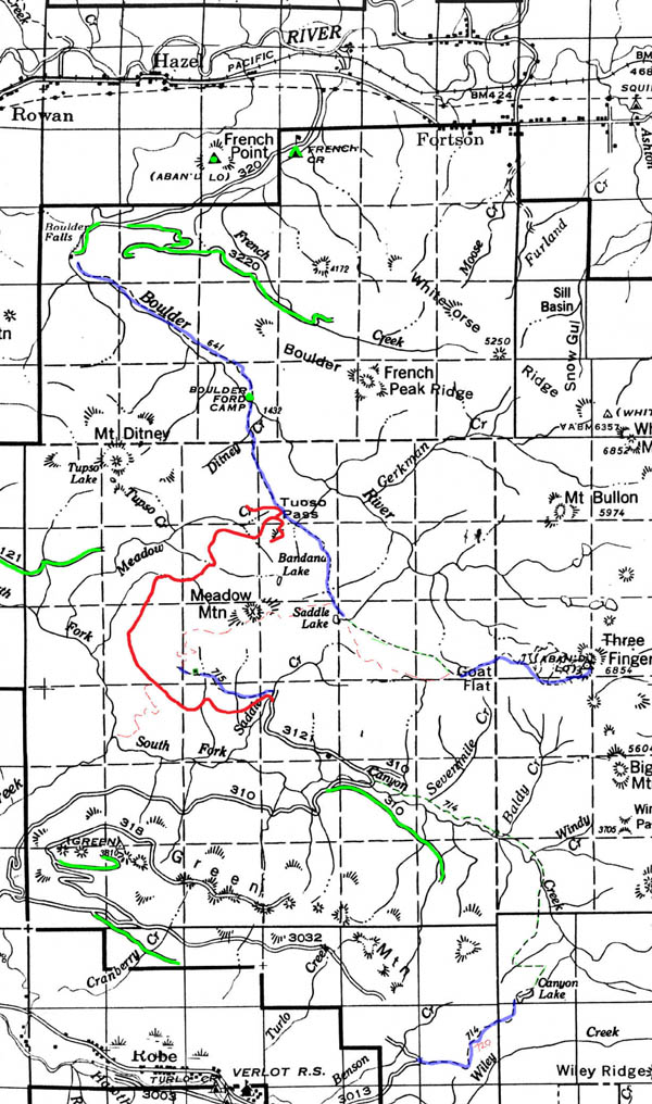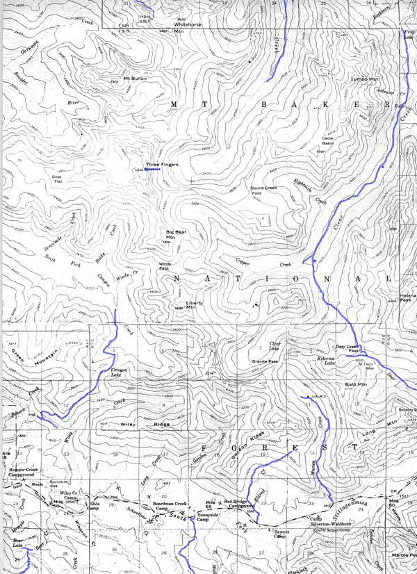 A composite of USFS Mt.Baker-Snoqualmie National Forest maps, 1962 and 1989
