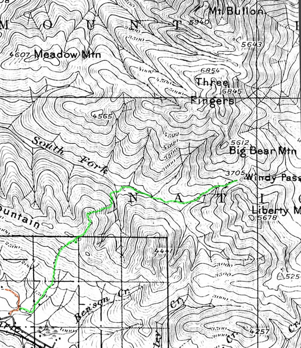 The USGS Silverton, 15', 1957 map shows the Three Fingers Lookout but no trail! Gone is the railroad and the Mountain Loop Highway runs up the South Fork of the Stillaguamish. Logging roads appear to the south of the river. The trails up Wiley Creek and Eldred Creek may not currently exist. The trail running south from Sunnyside Camp may now be a road. The other trails appear to exist today but some have been shortened by roads.