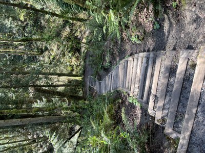 For folks with creaky knees: one portion of this hike has a LOT of stairs we will climb and descend again later. We will go slow. We will wait for folks. If you’ve wanted to get a little stair challenge - take your time and build your climbing endurance. Most of the hike is mellow rolling hills, small bridges, and dirt. The stairs are a small portion but important to have the fitness to do. After the stairs is a mostly flat urban walk to another small park. (Sorry the images are sideways!!)