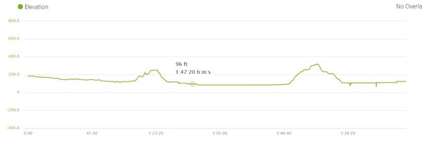 Note that the elevation plots above and below were captured with a barometric pressure altimeter, and not necessarily calibrated each morning. You will notice the change in barometric pressure each day.
