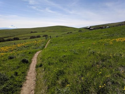 The route this hike will take is jam packed with a number of sites to see. Columbia Hills is a historic state park that includes a waterfall, streams, rolling hills, (season dependent) wild flowers, a historic ranch, views of the Columbia River Gorge, and if it's clear out Mt. Hood.