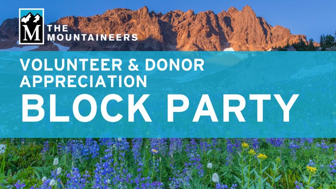 *The Block Party is an appreciation event for donors, 2024 super volunteers, 2024 key leaders, and 2024 key instructors. Invitations are sent to supporters who donated over $250 or volunteered 100+ hours last year. If you meet this criteria and did not receive an invitation, please contact development@mountaineers.org.