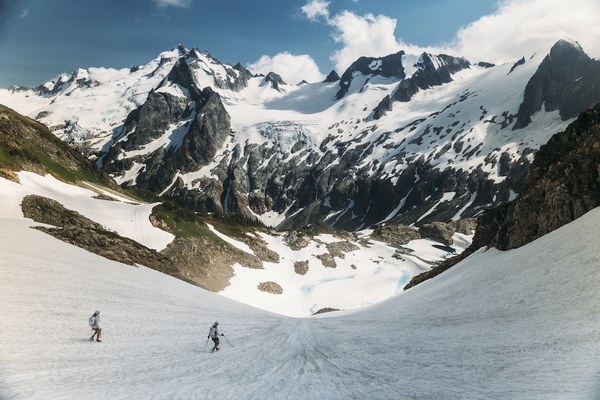 Over seven days, from July 16 to July 23, Kaytlyn Gerbin and Jenny Abegg covered 124 miles and almost 60,000 feet of elevation through some of the most aesthetic, remote and arduous mountains and glaciers of Washington. The original land stewards of these areas include Sauk Suiattle, Okanagan, Methow, Confederated Tribes of the Colville Reservation, and more, though the first records of people crossing the complex peaks are from the 1930s.