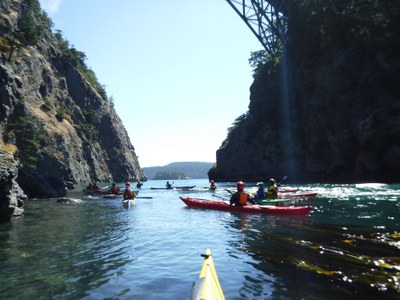 This clinic is an INTRODUCTION to currents. This years' basic class students may take the clinic if they have had two student paddles before the event (more is much better). First we will discuss paddling in currents, then practice some rescues and learn towing skills in a calm bay. We will then paddle to Canoe and Deception pass, entering near slack current. As the current builds we will learn how to enter and exit a current stream; how to paddle across a current stream, how to perform rescues in currents, and how to play in whirlpools and boils! You will learn how to glide across the currents, and use currents to aid turning your boat. Everything will be "challenge by choice" meaning the participants can opt out of any of the event, but if you do you won't get credit for taking the clinic (which is a requirement for the Intermediate Sea Kayaker badge). It is expected that capsizes will occur, which is part of the fun and part of learning. Dry suits are mandatory. It is advisable to take the Incident Management clinic the following day.