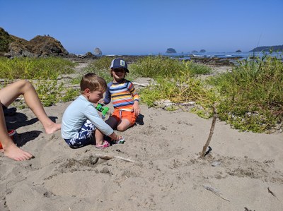Tent, sleeping bags, sleeping pads, toiletries, food for two days