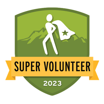 The recipient of this badge has volunteered 150+ hours in the 2022-2023 fiscal year (October 2022-September 2023). This could be as a trip leader, course instructor, committee member, event volunteer, lodge host, youth volunteer, or stewardship volunteer.