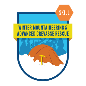 The holder of this badge has participated in an advanced crevasse rescue and winter mountaineering trip and has learned the following skills, as witnessed by a Mountaineers leader or designee.